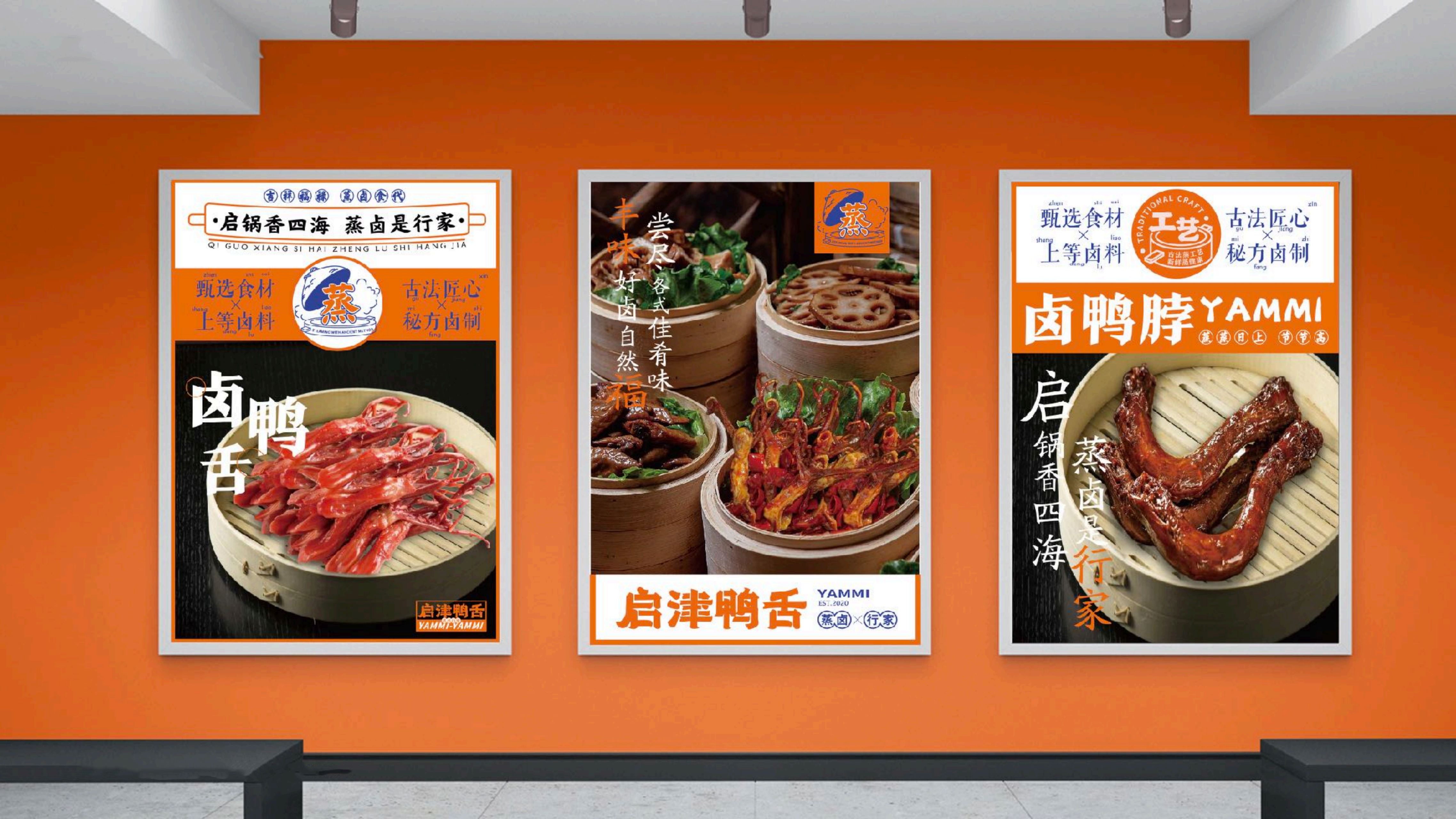 品牌诠释:启事卤味风味说/开创卤味新食代;津津有味弹上瘾/鸭赚俏味钱不换
