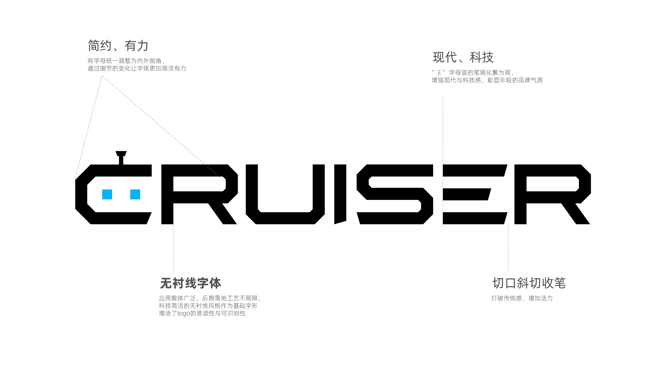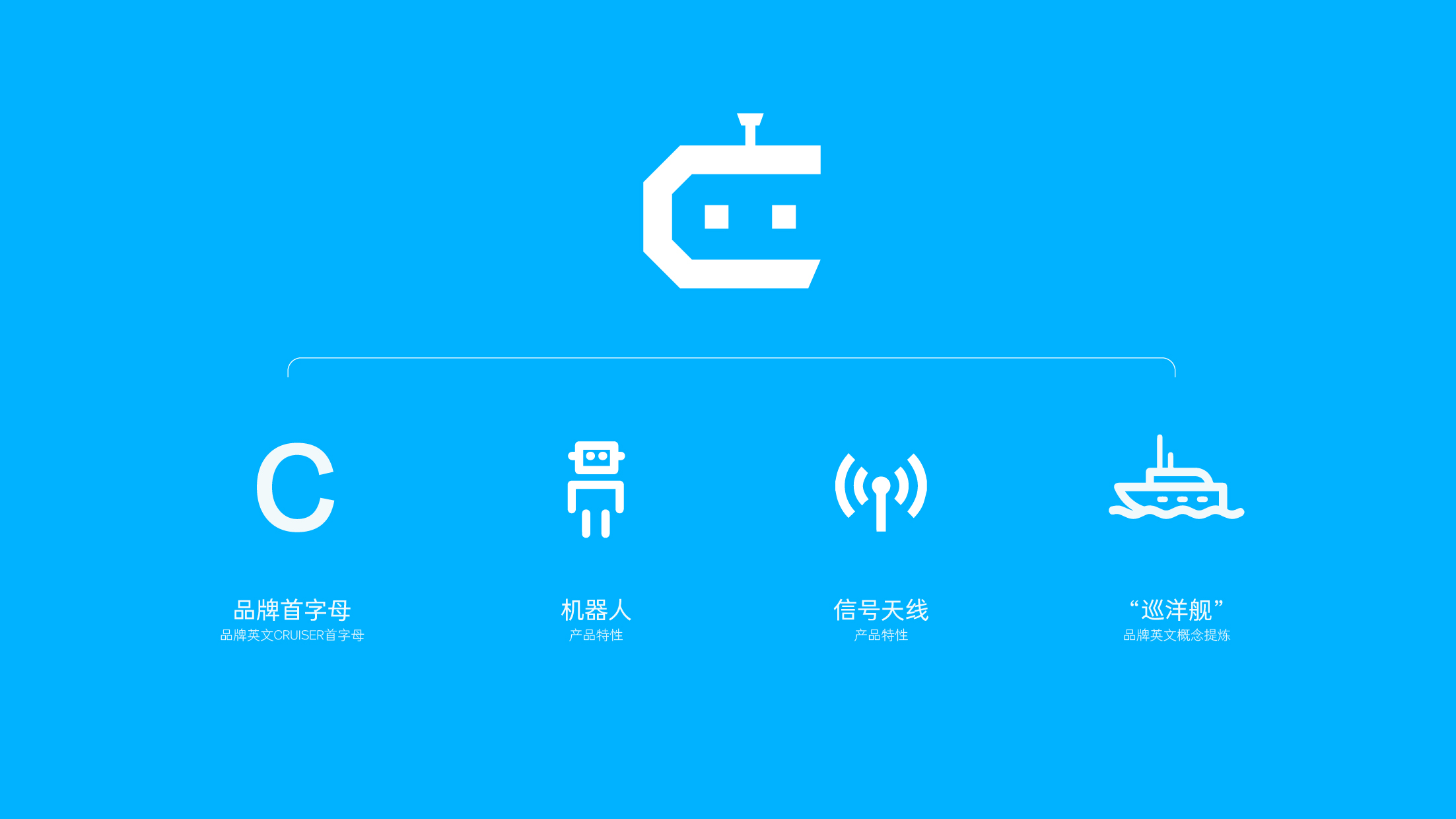 设计释义:巡航兵logo设计以品牌英文首字母“C”和机器人轮廓结合为创意点,给人科技智能化视觉感受,机器人天线既体现信息的传递,又符合巡航兵产品精确的特性,C