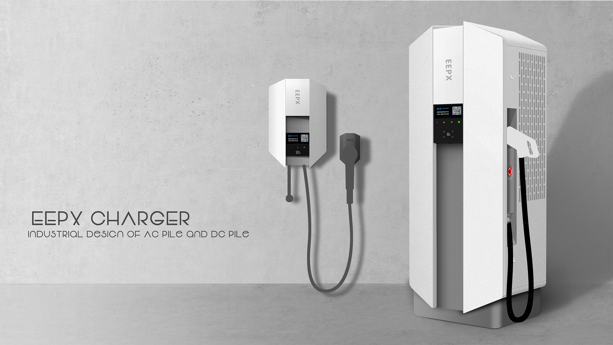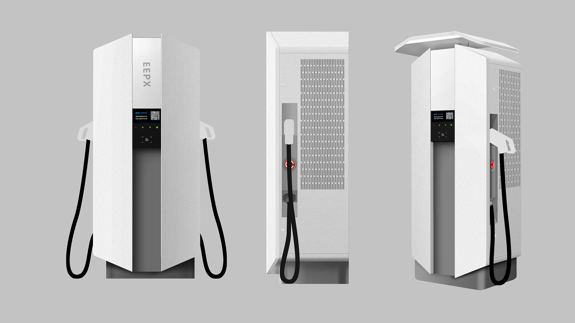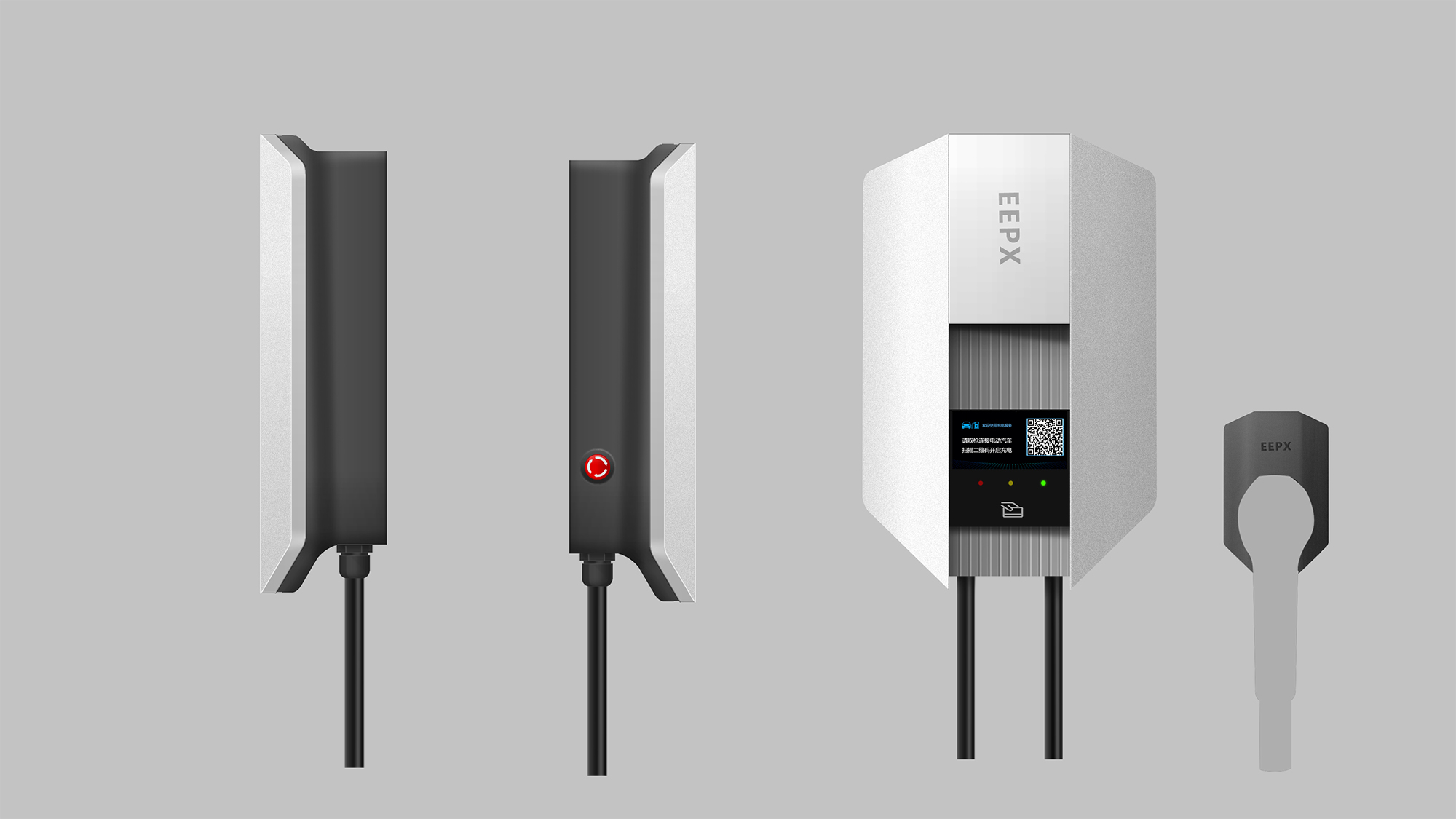 + 充电类产品安全作为当下的首要大议题,整体德系设计的极简与克制处理,凸显了直流桩到家充桩的产品品质感与安全属性。
