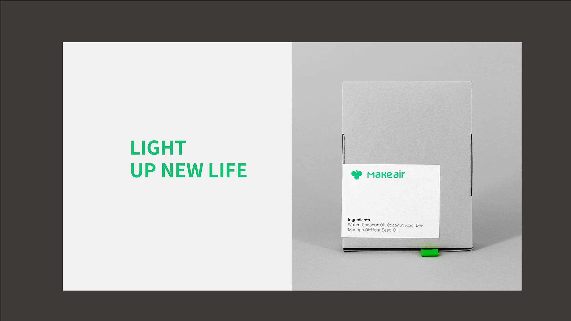 在植被茂盛、空气清新的自然环境中生存的萤火虫,与品牌“打造健康清新的生态环境”的理念相契合。在logo视觉塑造上,将萤火虫与代表美好的四叶草图形化并组合,传达追求健康空气、绿色生态的价值观;在产品设计上,logo可作为呼吸灯图标,即强化了品牌视觉识别,又起到很好的装饰效果。