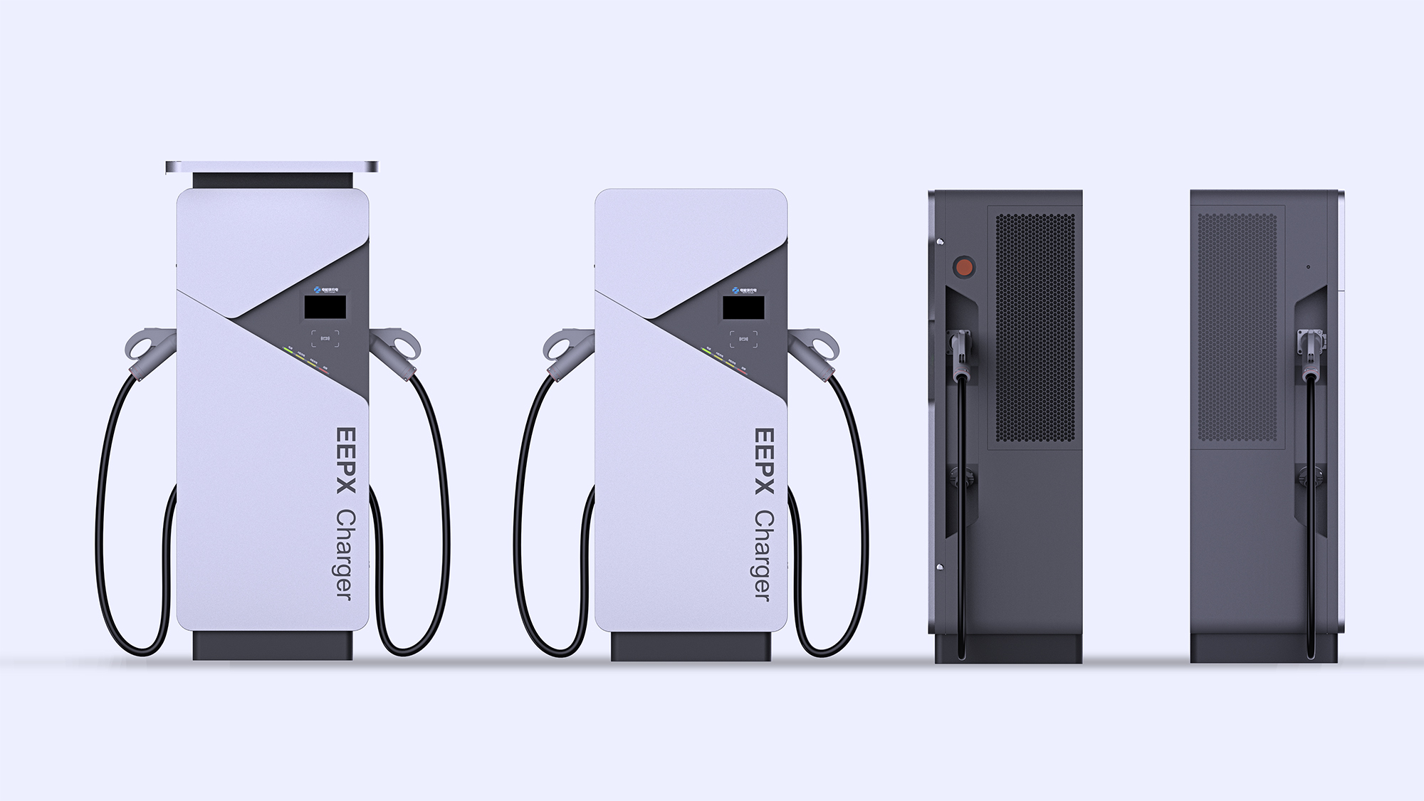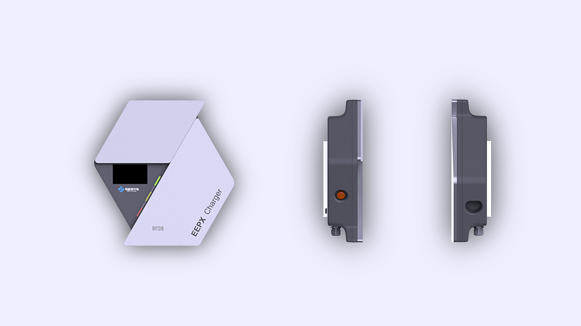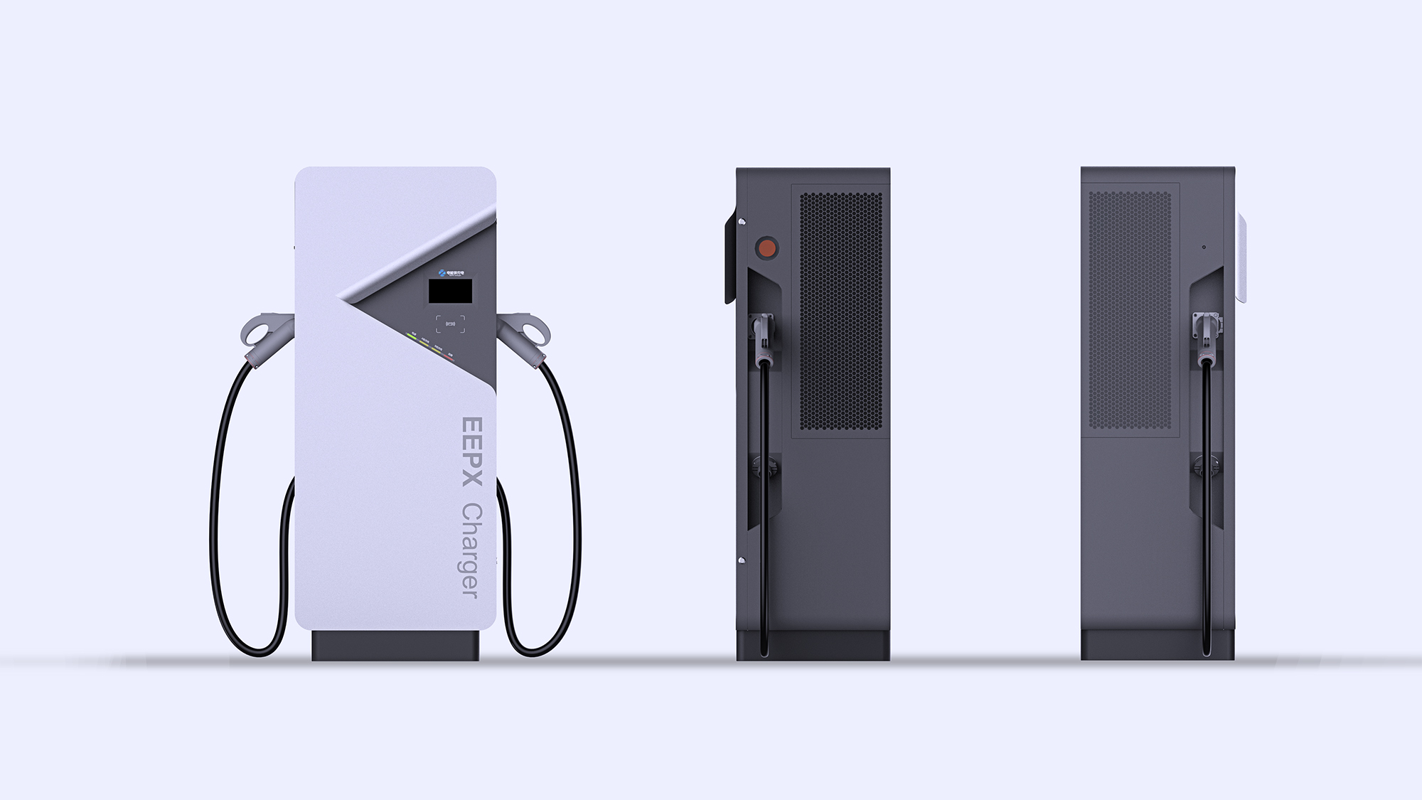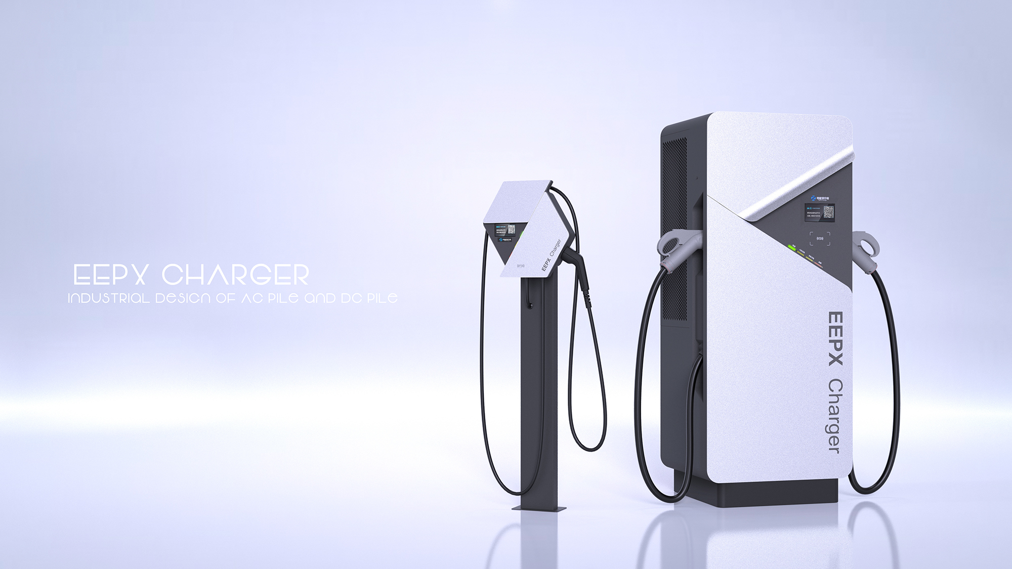 + 充电类产品安全作为当下的首要大议题,整体德系设计的极简与克制处理,凸显了直流桩到家充桩的产品品质感与安全属性。
