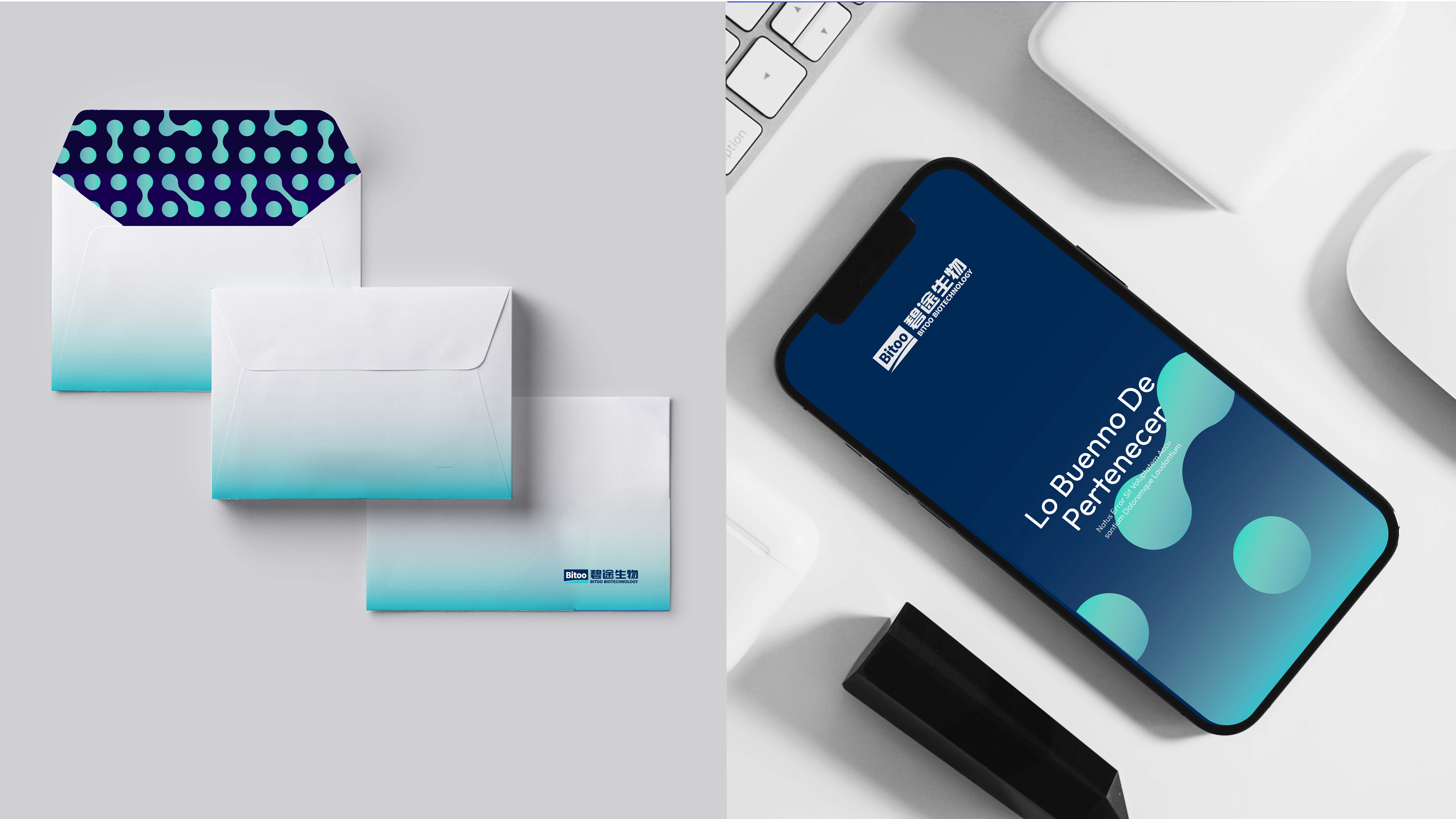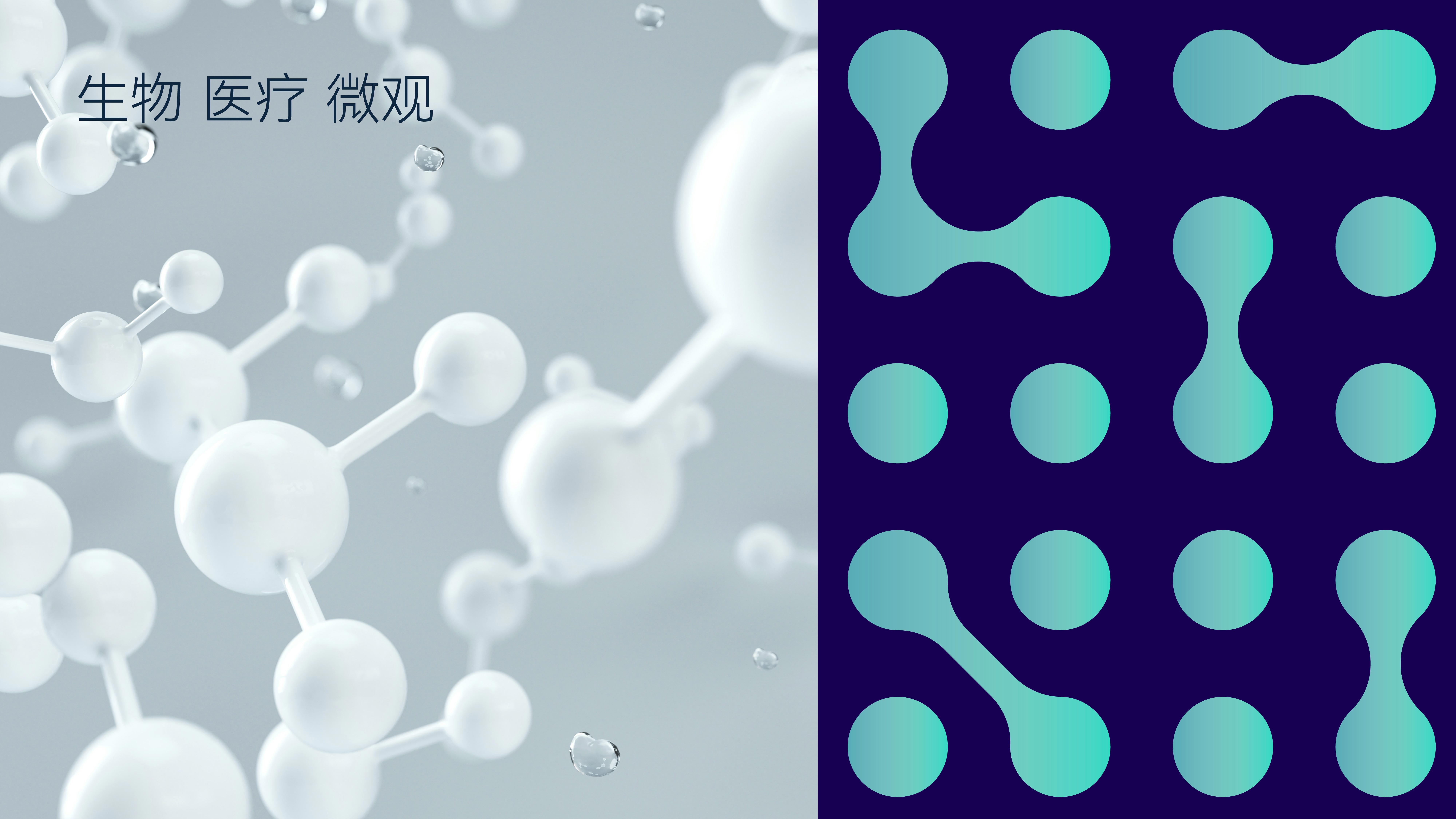 整个VI设计从分子到极光,既体现了生物医/疗行业的科技感与未来感,也通过延展图形的多样应用,展示了品牌探索未知、突破无限的使命感。