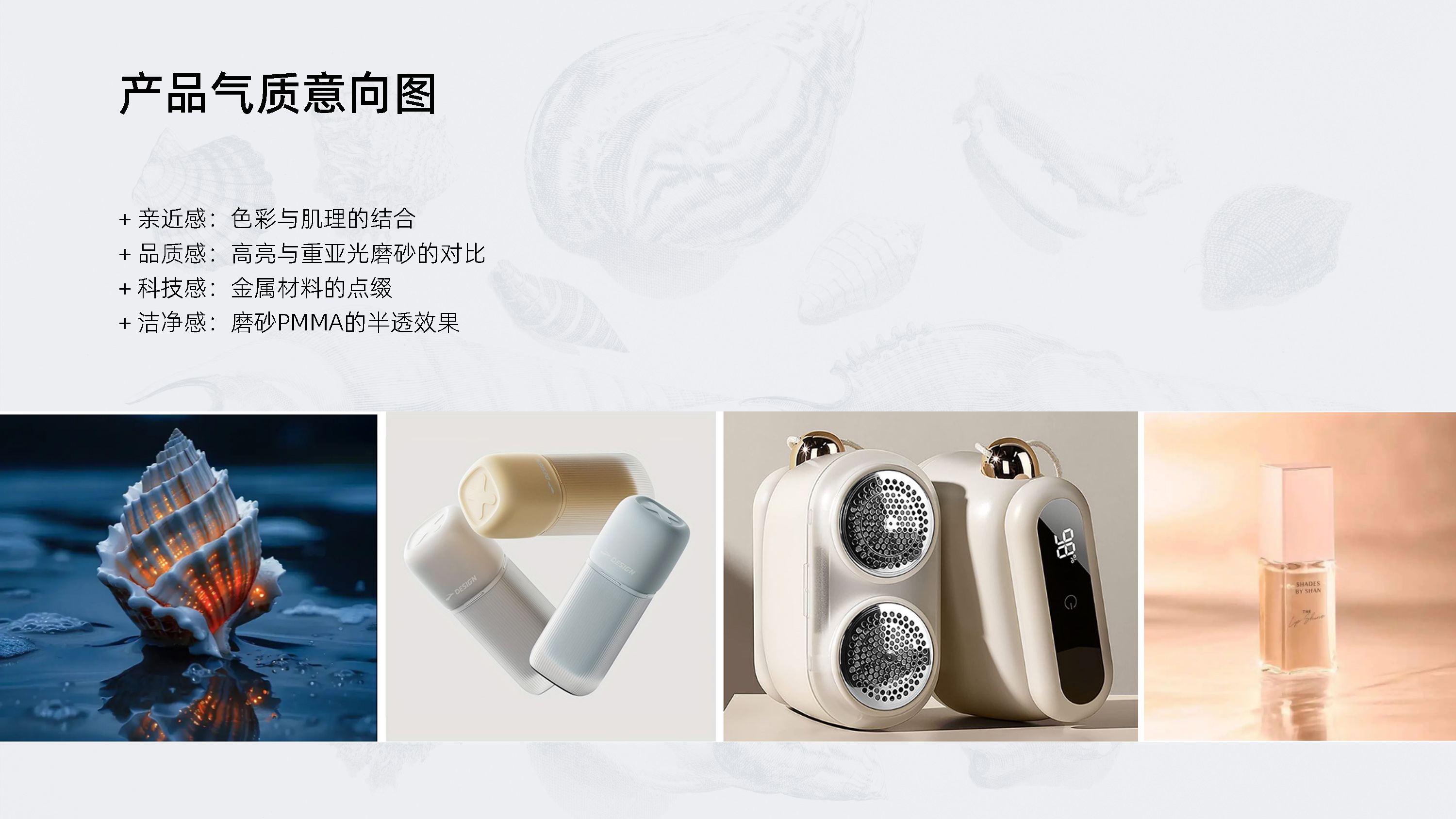 ⚫配色强调“素颜科技感”理念:珠光白贴近肤质,温润克制;雾光紫折射冷调能量,低调而独立。